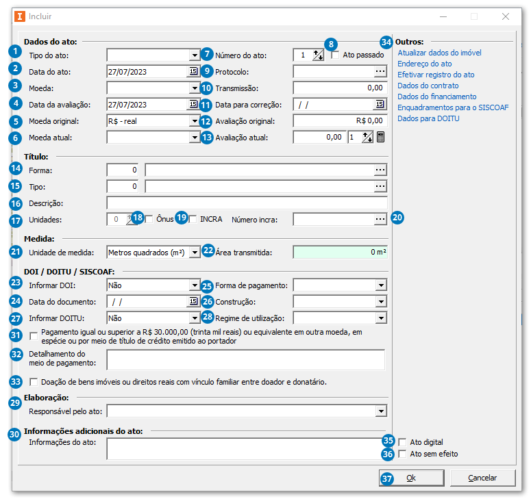 Utilizado para informar os dados do imóvel, Dados do FRJ(SC), endereço, registro, contrato, financiamento, enquadramento do SISCOAF edados para a DOITU.