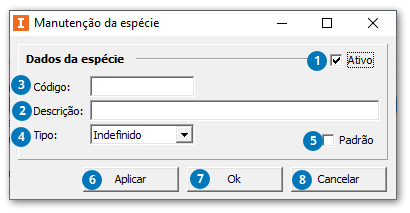 Utilizado para gravar inclusão ou alteração e permitir que inclua uma nova espécie do bem.