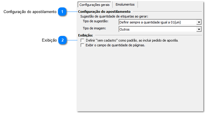 - Exibir o campo de quantidade de páginas: quando marcada, permite alterar a quantidade de etiquetas geradas por apostila.