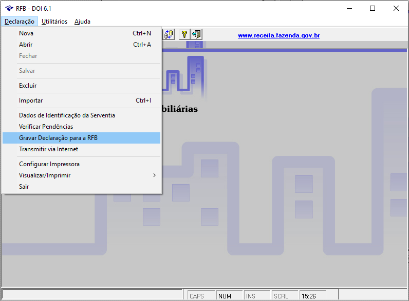 IMPORTANTE: As telas abaixo são de sistemas externos. Para fazer o envio, é necessário ter na máquinas os aplicativos DOI, ReceitaNet