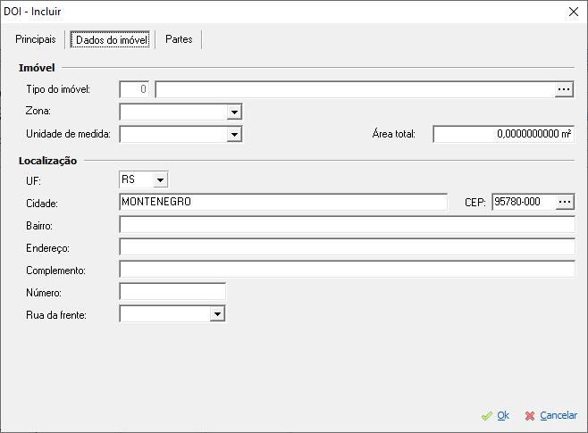 Utilizado para o cadastro de informações do imóvel, como dados de Tipo de ato, valores, tipo de doi e valores a serem informados.