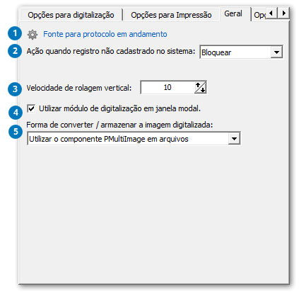 Utilizado para parametrizar a fonte para protocolos em andamento.