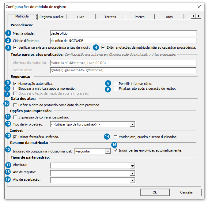 Utilizado para controle de registros 'Tipo de livro padrão', se aplica na inclusão de novas matrículas, sendo inclusão manual, por cópia de outra matrícula ou por lote de atos.