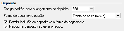 - Forma de pagamento padrão: definição da forma de pagamento padrão para depósitos da nota de entrega.